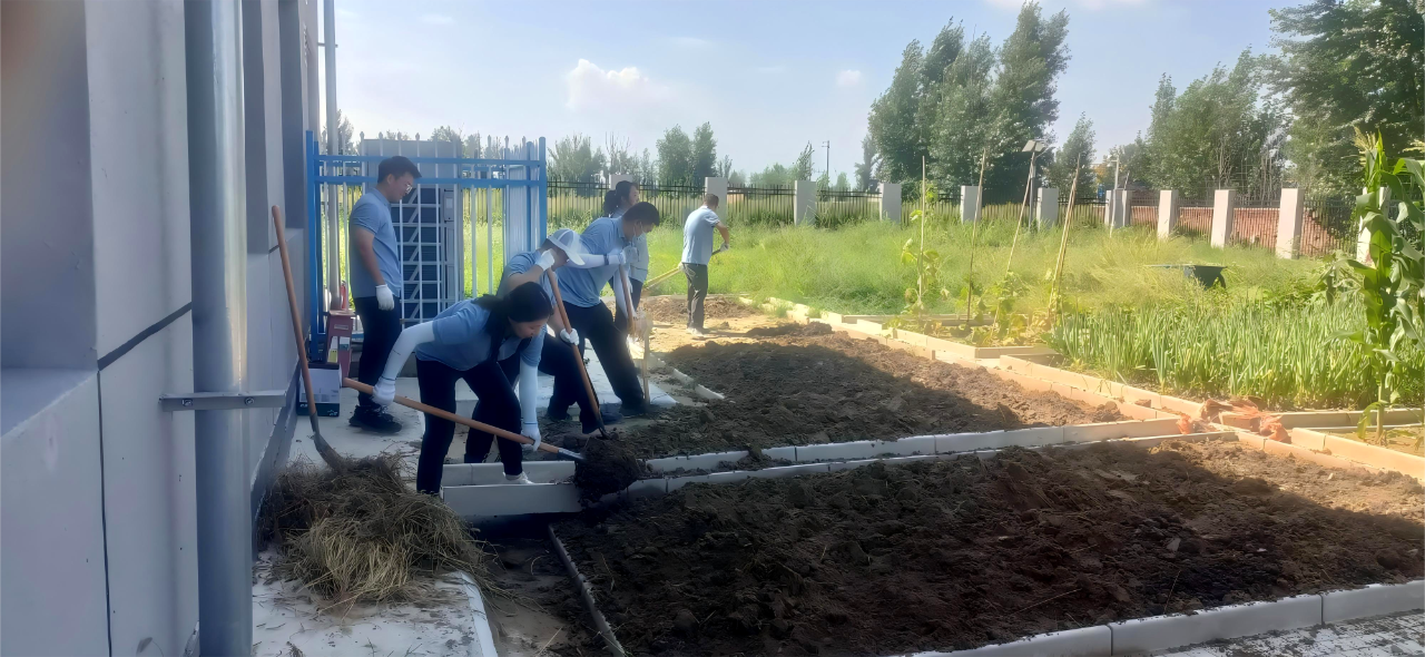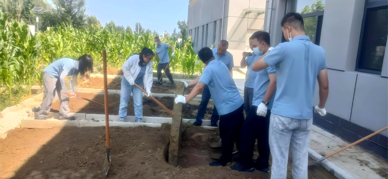 随后,公司领导班子带领非在岗值班员工前往呼和浩特市至托清工业园区长输再生水项目中间泵站,开展了一场劳动实践活动。公司计划利用这片空闲土地,打造一个绿色蔬菜水果供应基地。活动当天,气温高达30摄氏度,烈日炎炎,大家汗水不断却干劲不减。领导班子率先挥锹动土,全体员工也纷纷拿起工具,兴致勃勃地投入到垦地劳动中。有人抡起锄头翻整土地,有人弯腰捡拾碎石,有人负责耙平土壤,还有人跟进施肥。期间,笑语不断,大家分工明确、配合默契,尽管汗水浸透了衣背,阳光晒红了脸庞,劳累也让手臂酸软,但没有人停下手中的活儿,反而个个争先、相互鼓励,现场气氛热烈非常。这场集体劳动不仅让大家体验到耕耘的快乐,也在汗水和协作中进一步增强了团队的凝聚力和战斗力。